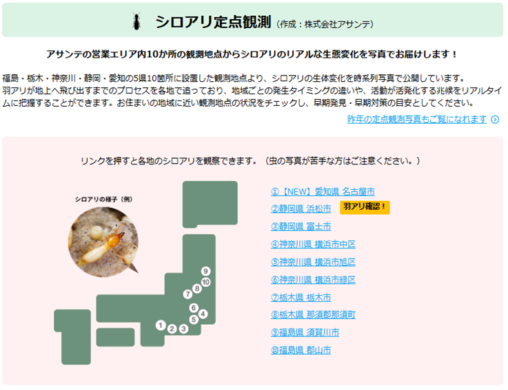 <2025年度版 シロアリ実況マップ>https://www.asante.co.jp/alert/2025/
