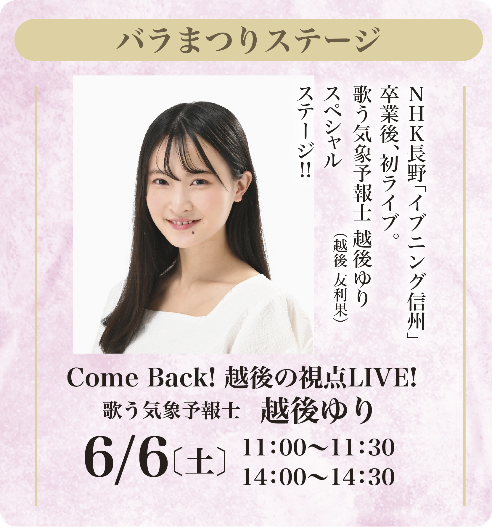 「信州なかのバラまつり」に越後友利果が出演します。